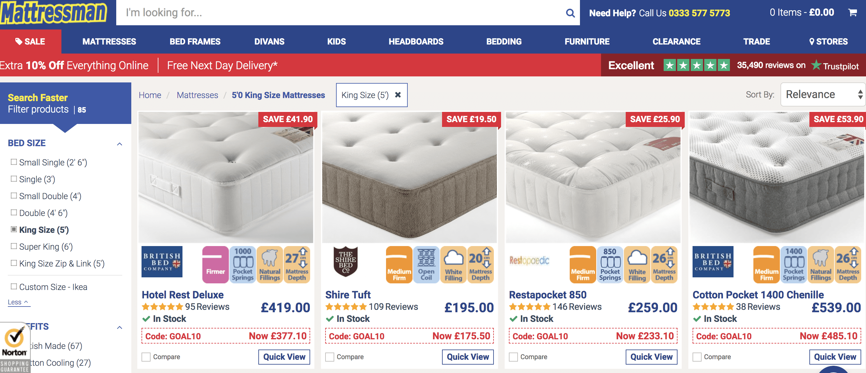 We hoped onto the Mattressman website to take a look through the king size mattress options available.