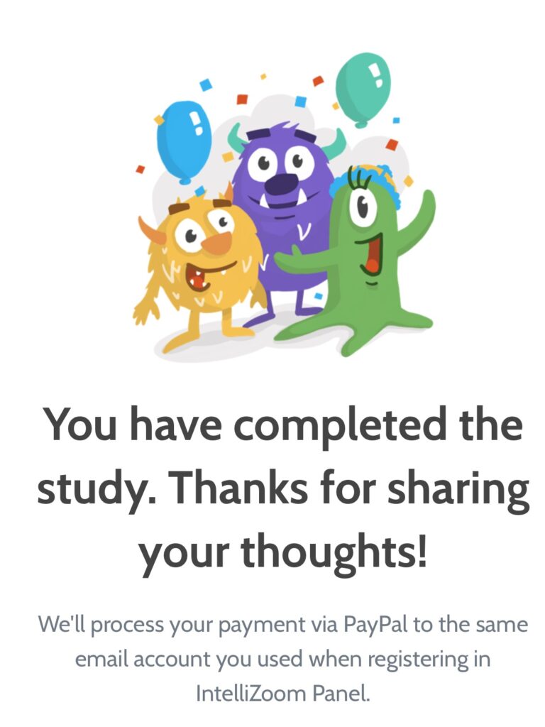 One of the biggest downsides to Intellizoom is that there is nowhere to see all of the studies you have completed on the website. This makes tracking your earnings difficult, however you do receive an email after successfully completing a study.
