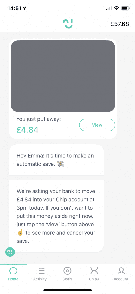 Chip uses AI magic to help you to stash away money automatically. They have used data from over 180 million transactions cross referenced with information about you (like your age, where you live and more) to work out how much money to stash away. They move your money into a Chip account every few days, which is called an automatic save.