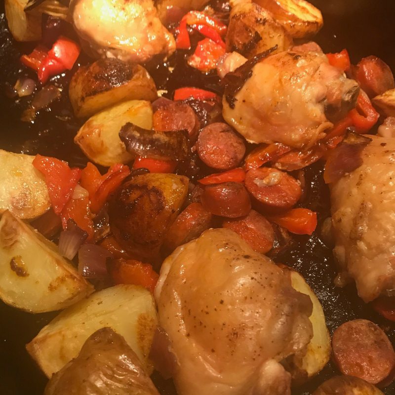 My absolute favourite is the chicken, potato and chorizo traybake. It uses cheap chicken thighs from Lidl or Aldi, and the chorizo gives it great flavour and depth.