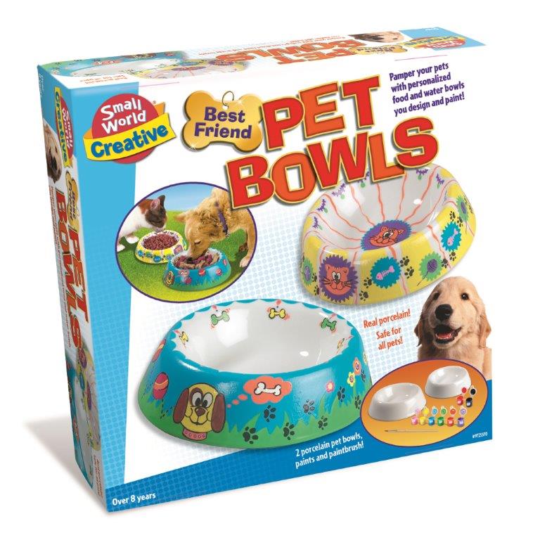 Pamper your furry friends with these personalised food and water bowls. Design and paint the bowls, then bake them in the oven to set. Real porcelain food and water bowls, including 12 paint pots and paintbrush. Show your loyal companions some love with these adorable customised bowls, personally designed just for them! Water bowl: 22cm diameter, 6cm high. Food bowl: 19cm diameter, 5cm high Suitable for Ages 8+.