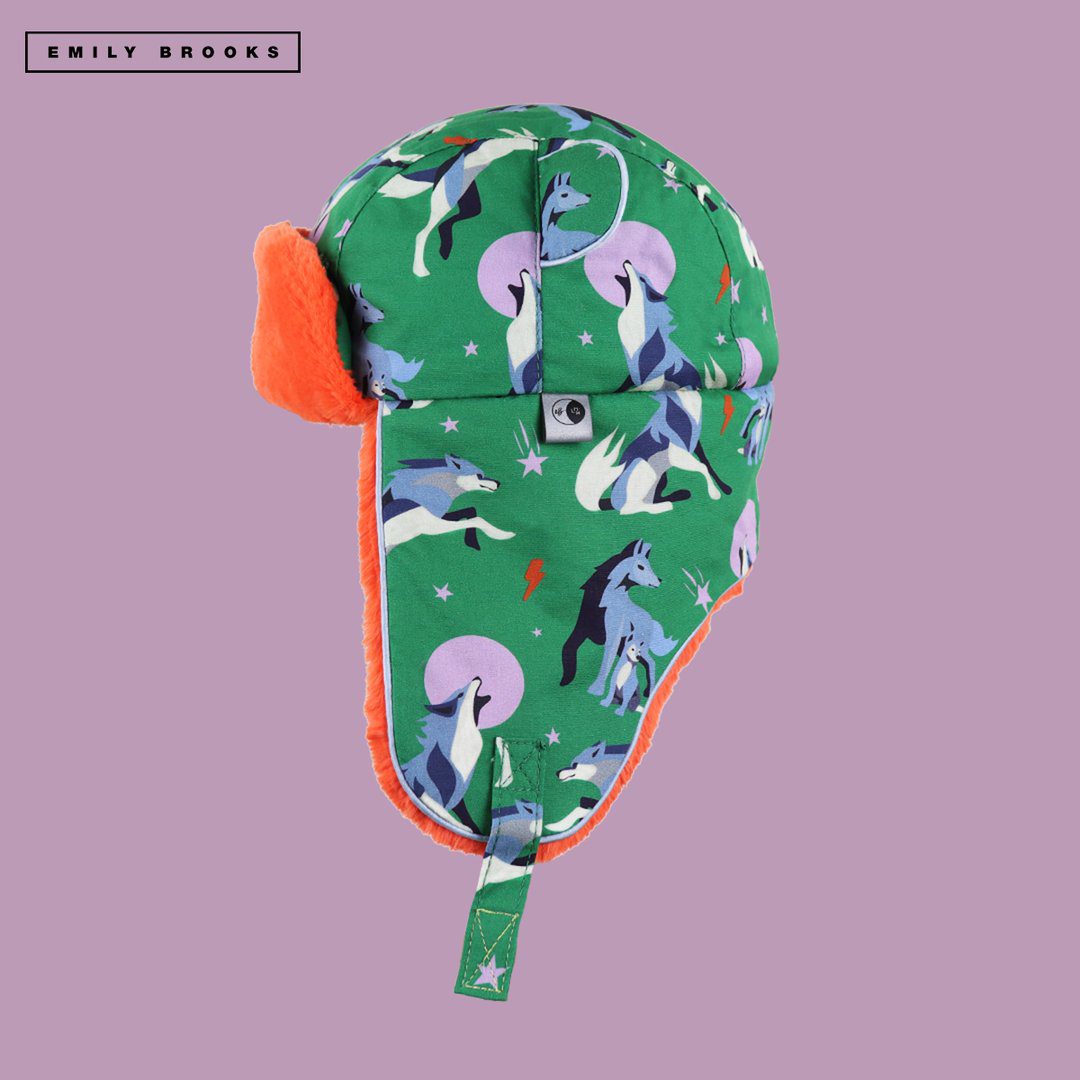 We have an Arctic Cub kids winter hat in size 6-8yrs from cool kids hat brand LITTLE HOTDOG WATSON in an exclusive collaboration with award winning British illustrator and designer Emily Brooks. Emily uses colour to uplift and tell stories. This hat is a world exclusive, bringing her latest characters ‘The Wolf Pack’ to life that she created especially for Little Hotdog Watson.