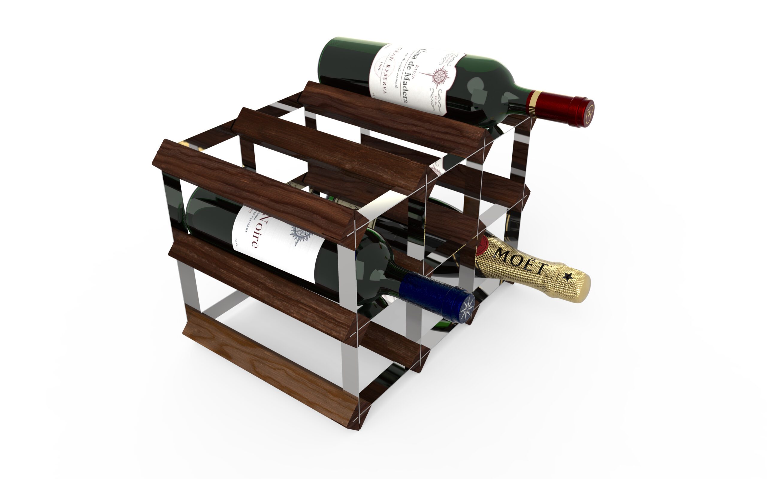 RTA FREESTANDING WOOD WINE RACK, 9 BOTTLE IN DARK PINE