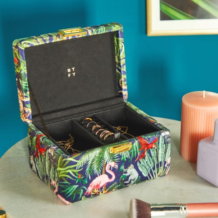 This absolutely beautiful Eclectic Jewellery Box makes the perfect gift this Christmas. It’s also super affordable too. At just £14.99 it’s excellent value for money. The vintage inspired tropical print box offers both style and practicality. It has a two-tiered velvet lined interior to ensure scratch-free storage, with the upper section featuring a 7-ring holder and two sections for bracelets, earrings and more.
