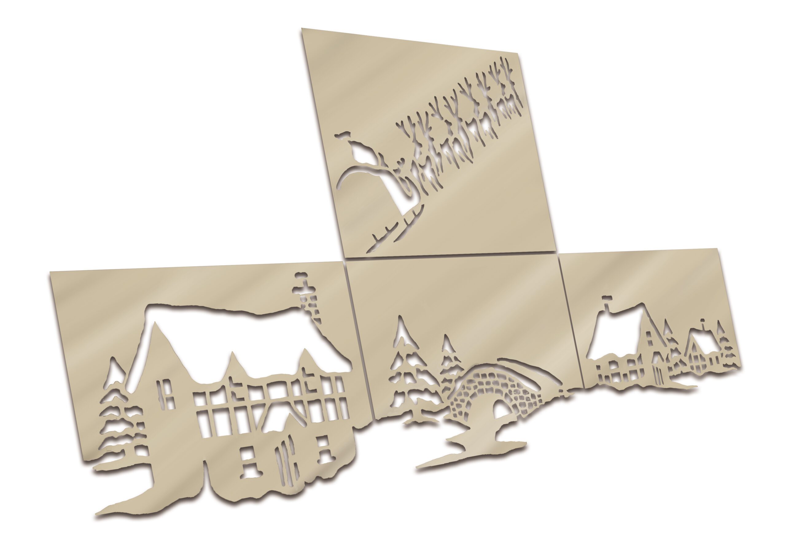 Snow Windows Christmas Stencil Pack; Reusable window stencils with 4 in a pack to create a magical scene winter scene, complete with Santa and his sleigh flying over the snowy village. Simple and easy to use and also easy to clean.