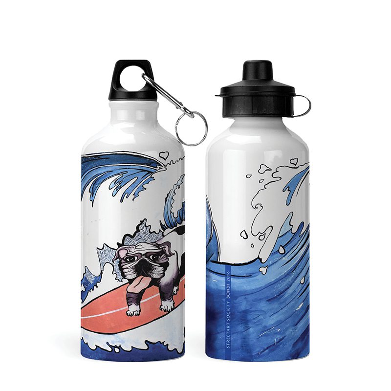 Rachel Giddens drops in with ‘Surfer Doggo’, sharing the puppy love in Bondi throughout 2016. “After filling out half the council application I realised I needed a plan for the work and immediately thought surfing dog! Later a traveller asked why the surfer doggo? I replied ‘because with so much hurt and hate and bad things happening in the world, people could do with a surfing doggo.” And we couldn’t agree more! Our lucky winner will receive one of these fabulous kids bottles.