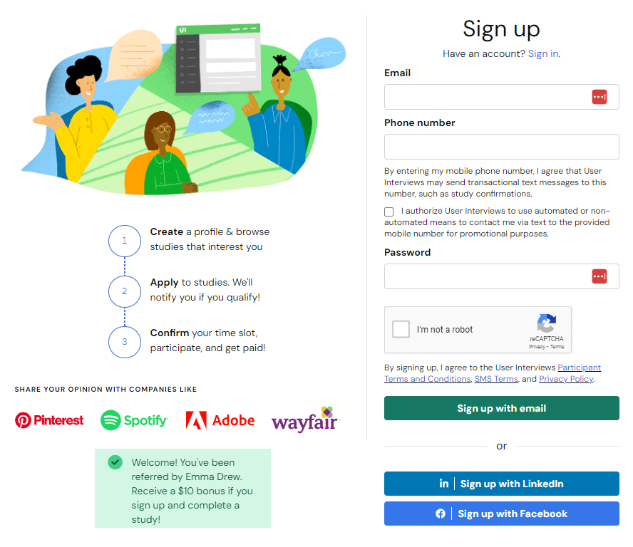 Join User Interviews and get a $10 bonus when you complete your first study.